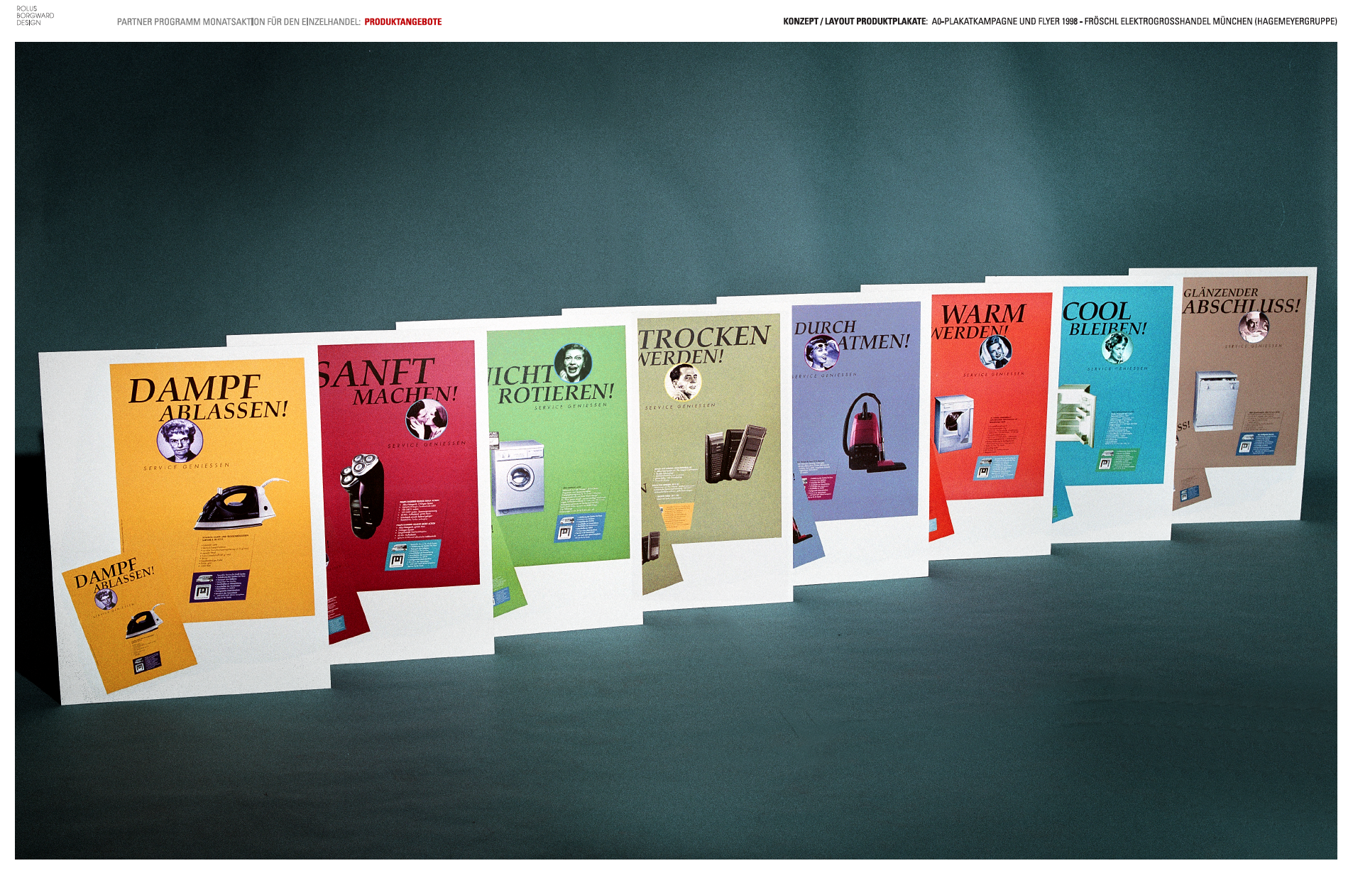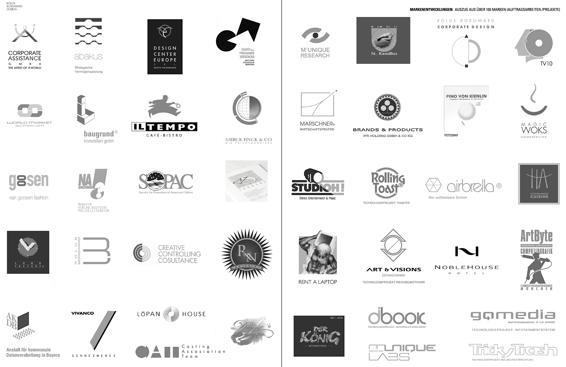 Nachfolgend sind auszugsweise Auftragsarbeiten von Glenn Rolus Borgward in den Bereichen Corporate Design (seit 1982) und Product Design (seit 1995), einschl. der dazu erforderlichen Technologiekonzepte und Patentierungsarbeiten aufgezeigt.